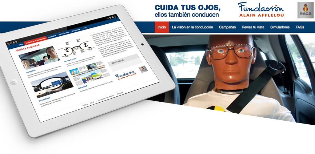 La Fundación Alain Afflelou y el RACE (Real Automóvil Club de España) colaboran en la campaña "Cuida tus ojos, ellos también conducen" con el objetivo de prevenir accidentes causados por problemas visuales y concienciar y formar a los conductores de la importancia de una buena salud visual.